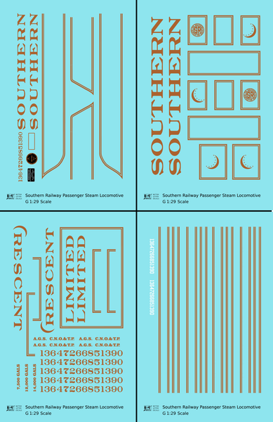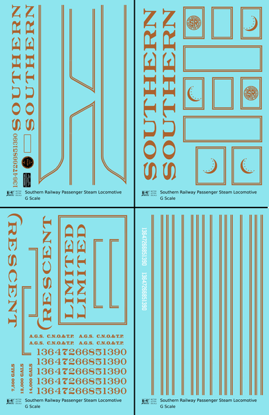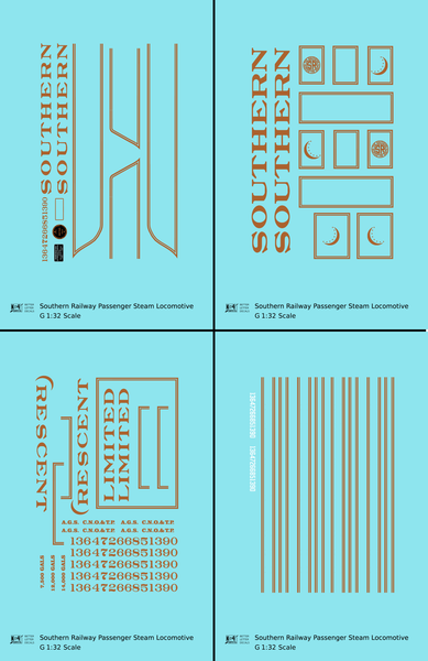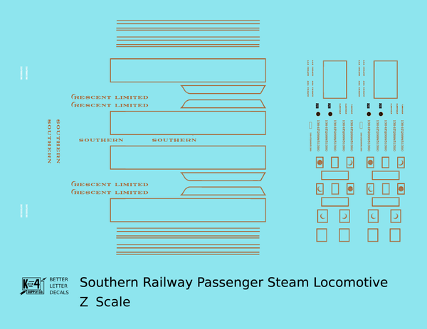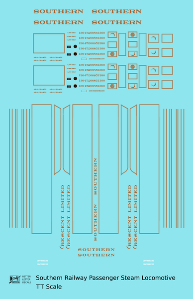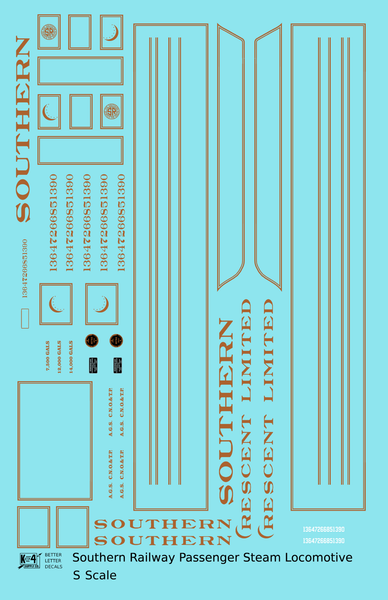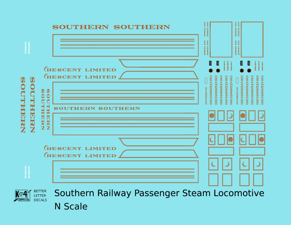 Southern Railway Passsenger Steam Locomotive Gold Crescent Ltd - Decal - Choose Scale