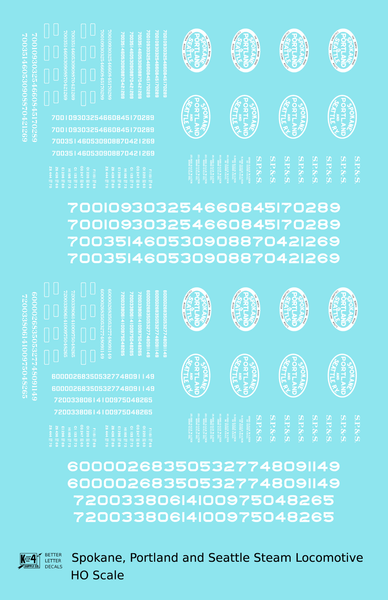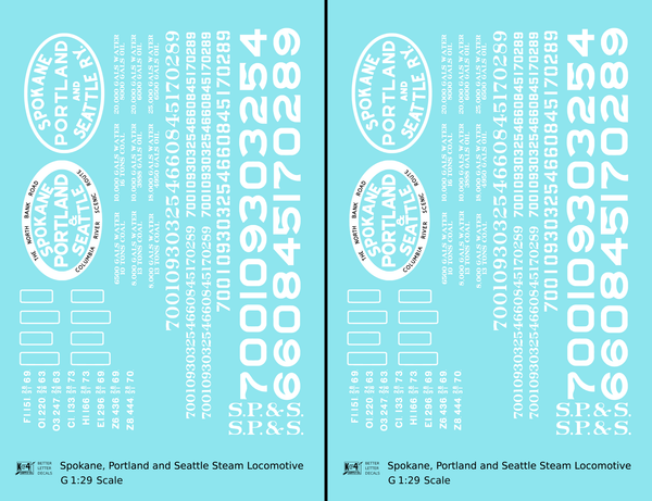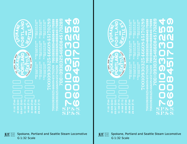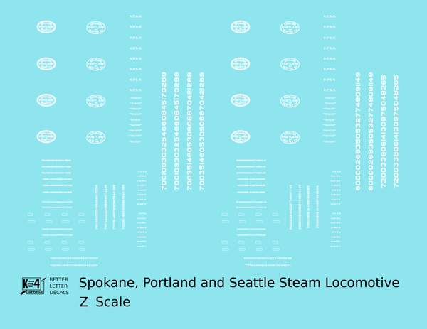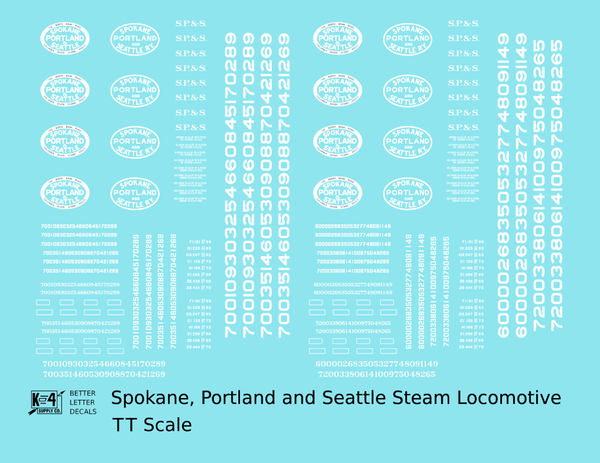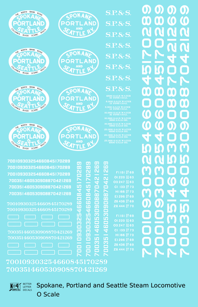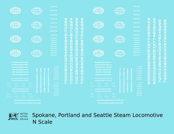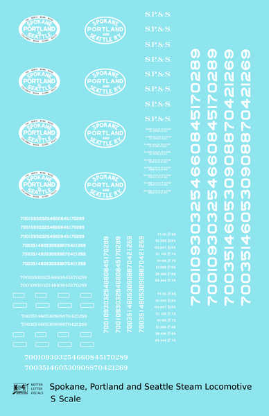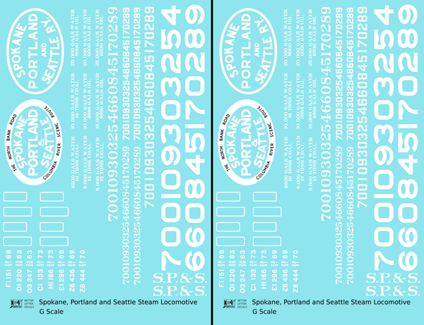 Spokane Portland and Seattle Steam Locomotive White - Decal - Choose Scale