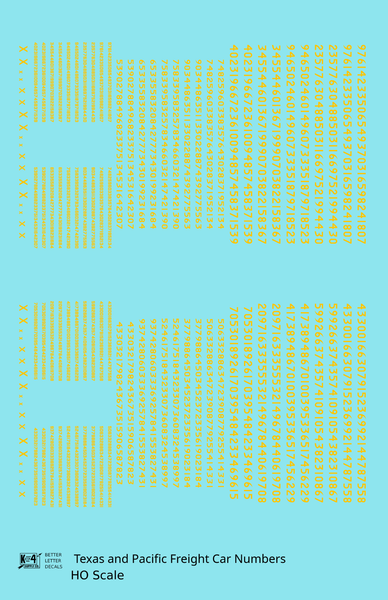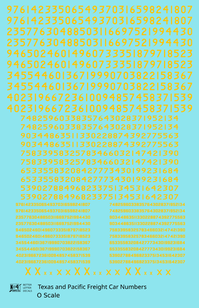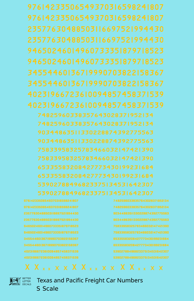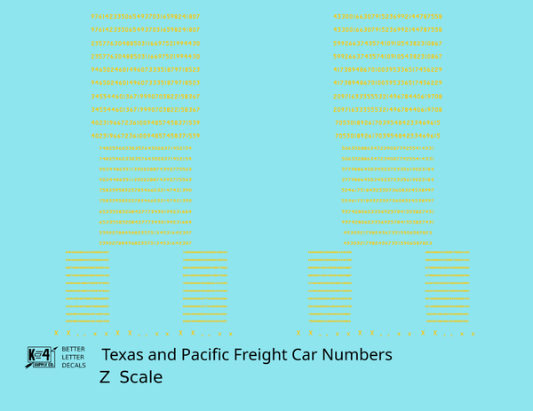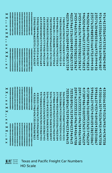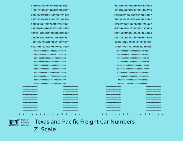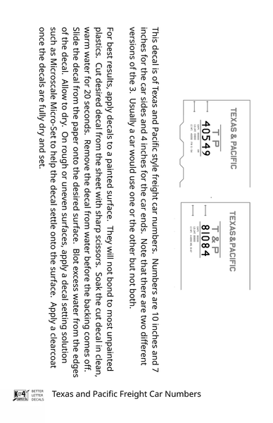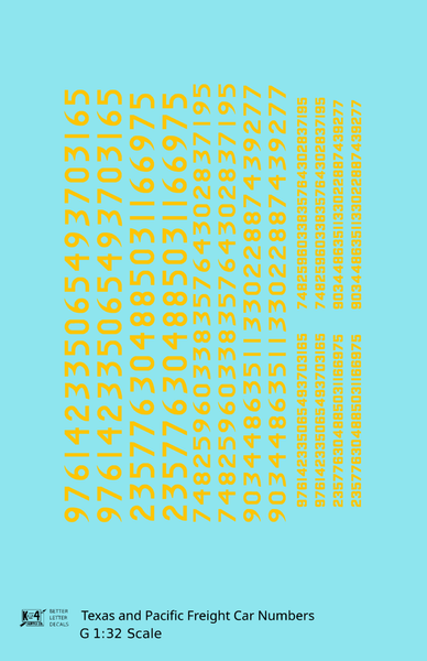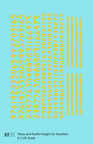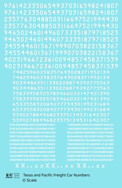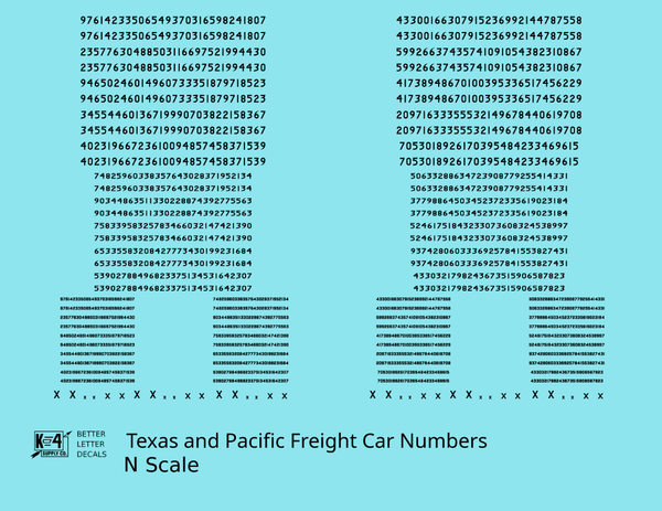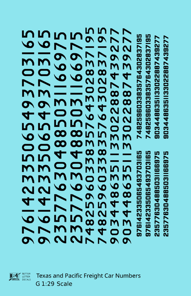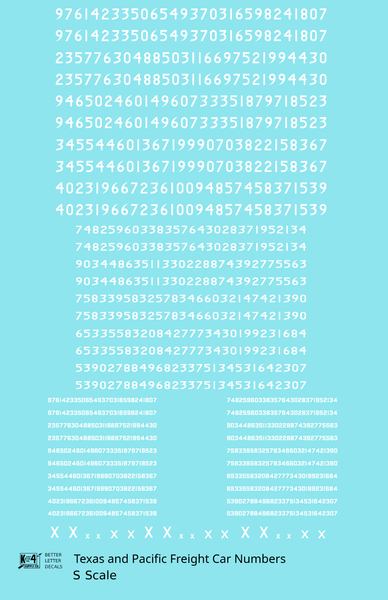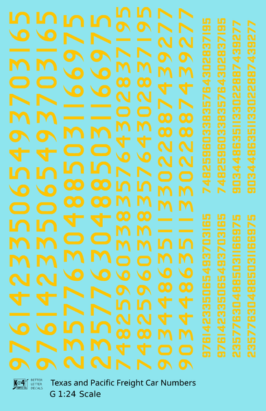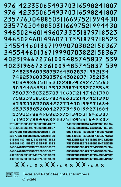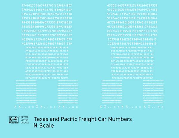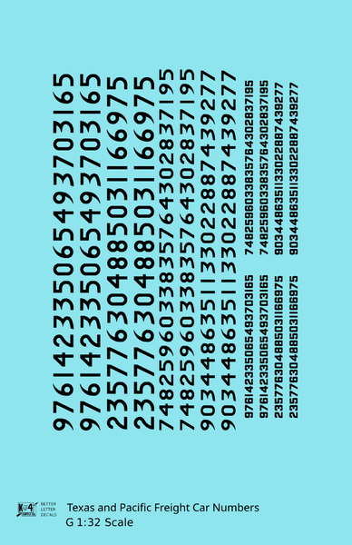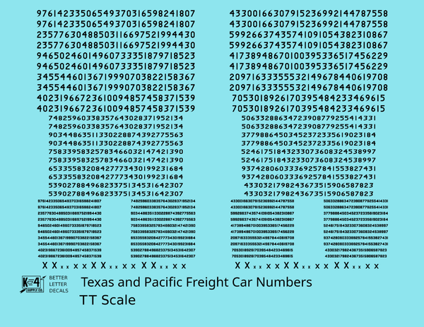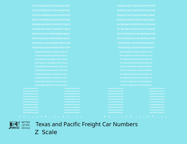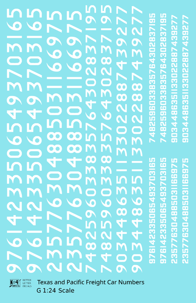 Texas and Pacific Style Numbers White 10, 7 and 4 Inch Renumber - Decal - Choose Scale and Color