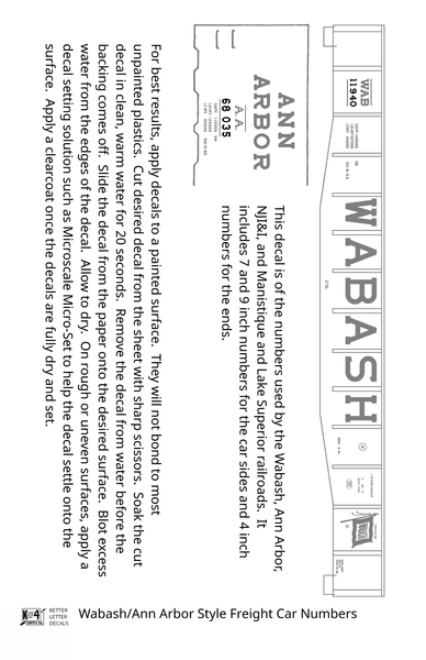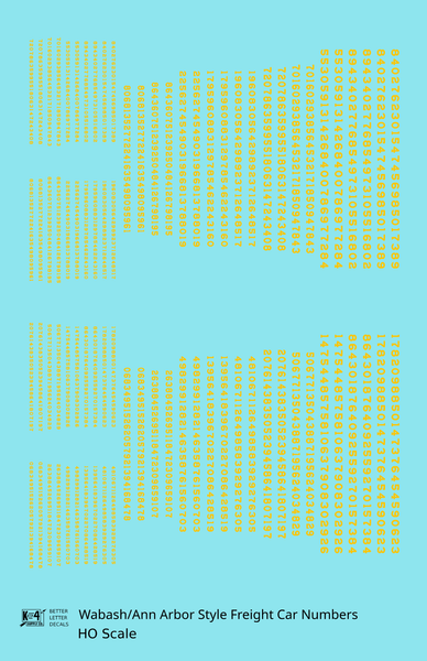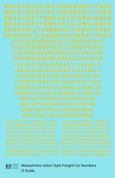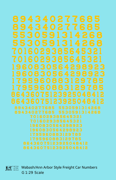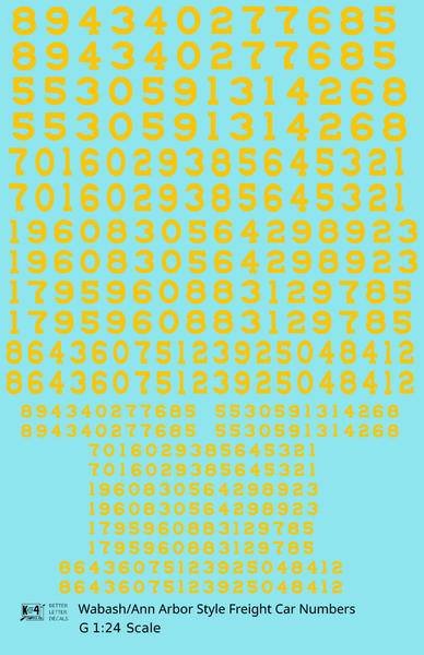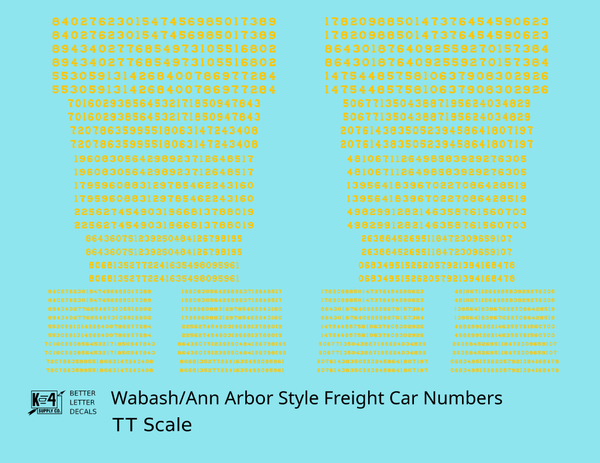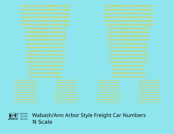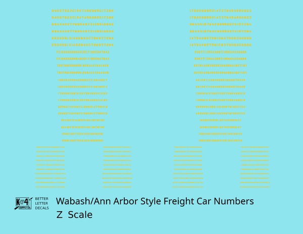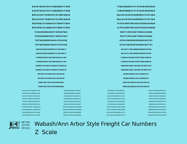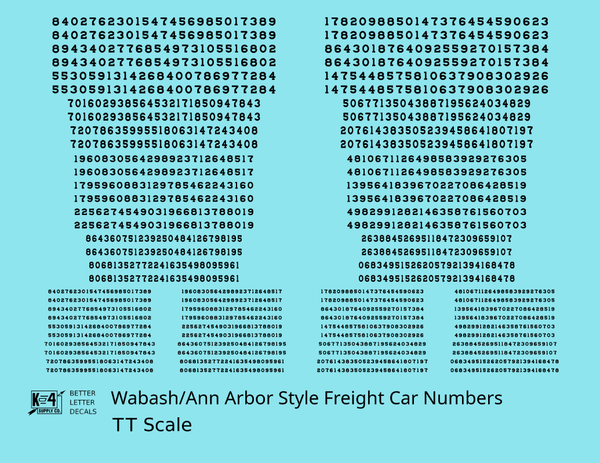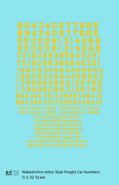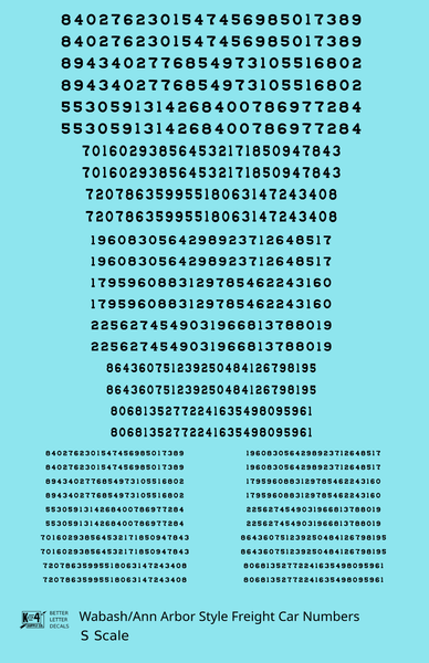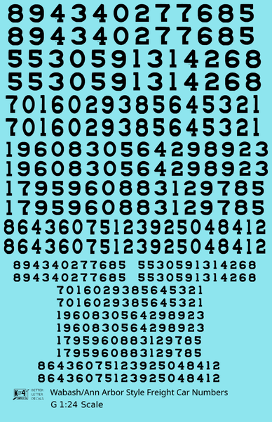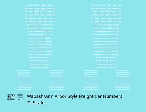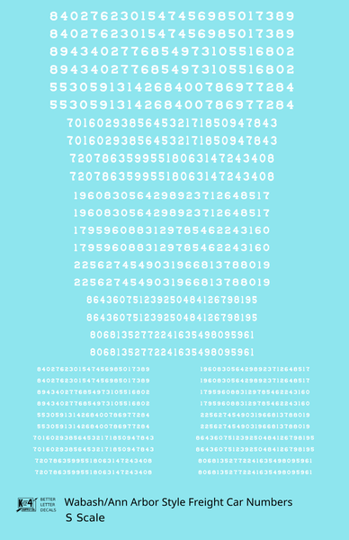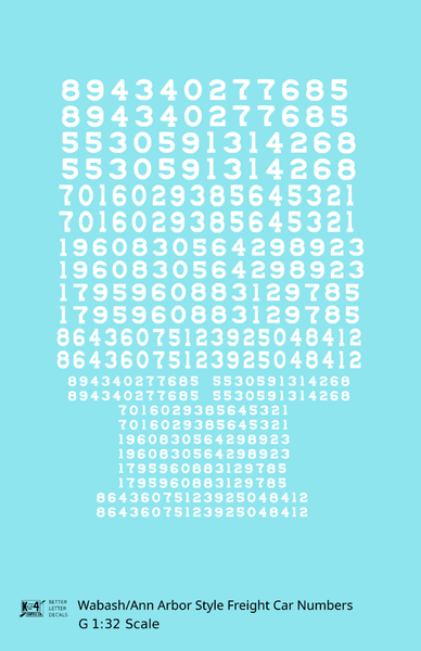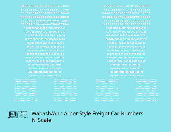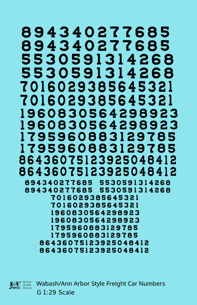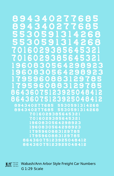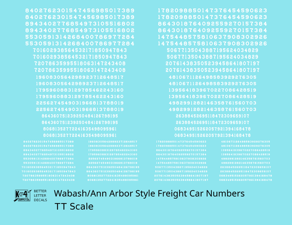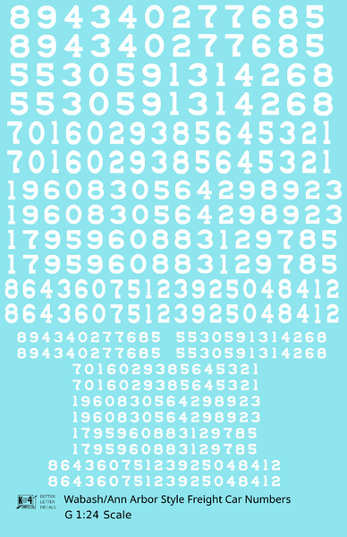 Wabash Style Numbers White 9, 7 and 4 Inch Renumber - Decal - Choose Scale and Color