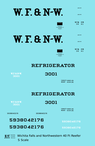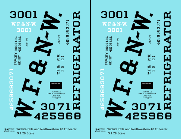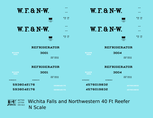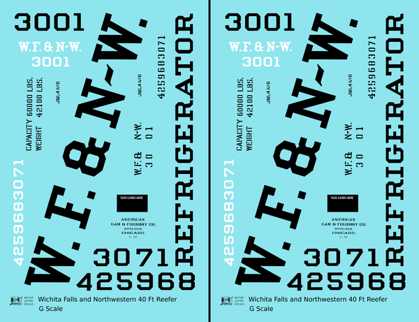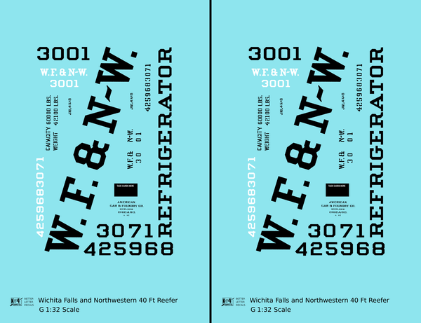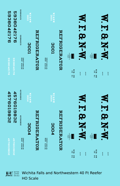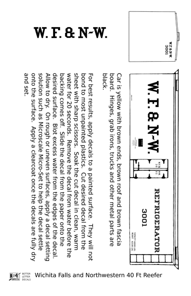 Wichita Falls & Northwestern 40 Ft Reefer Black - Decal - Choose Scale